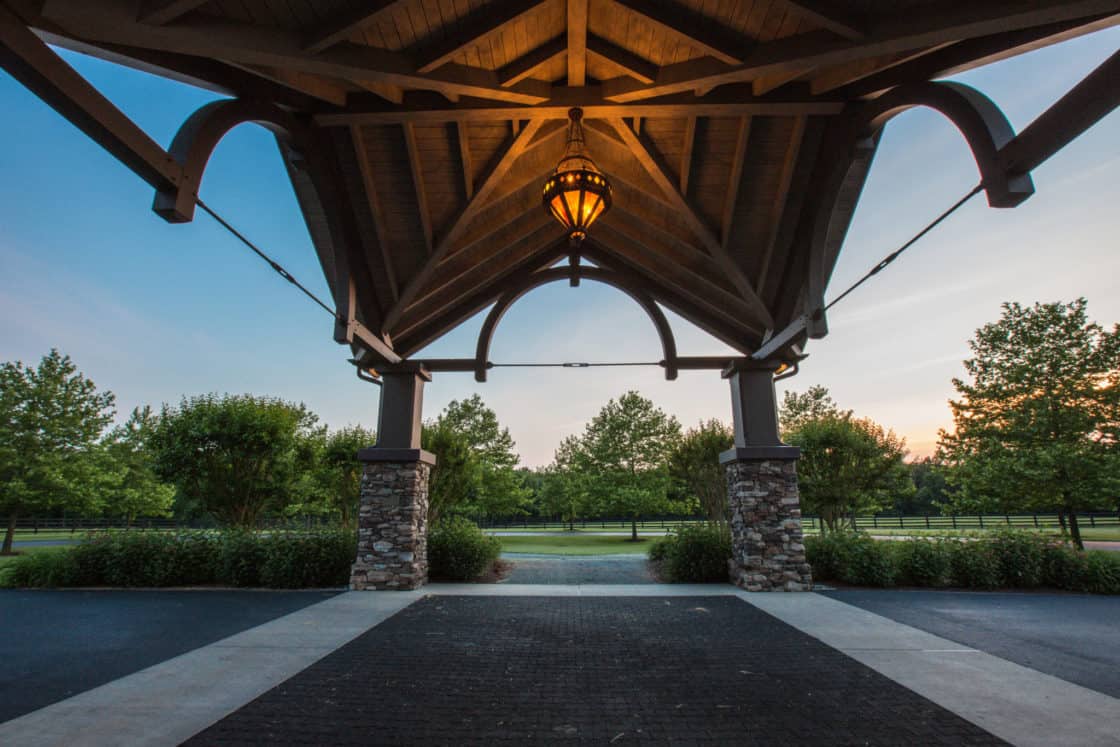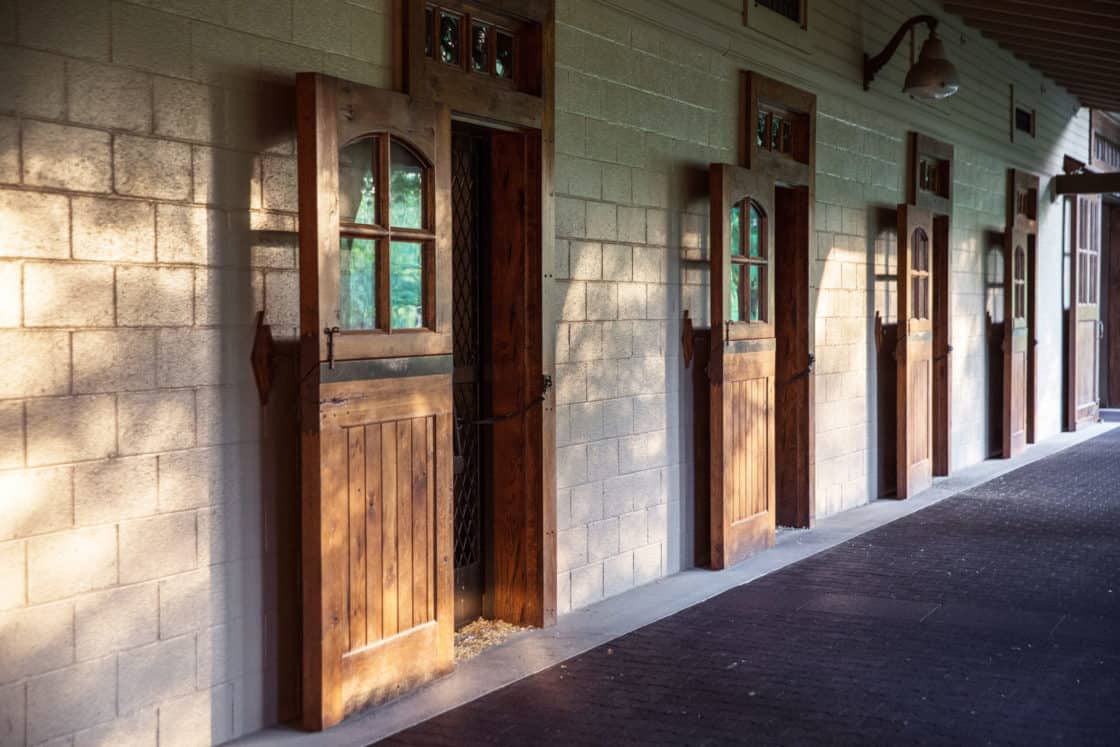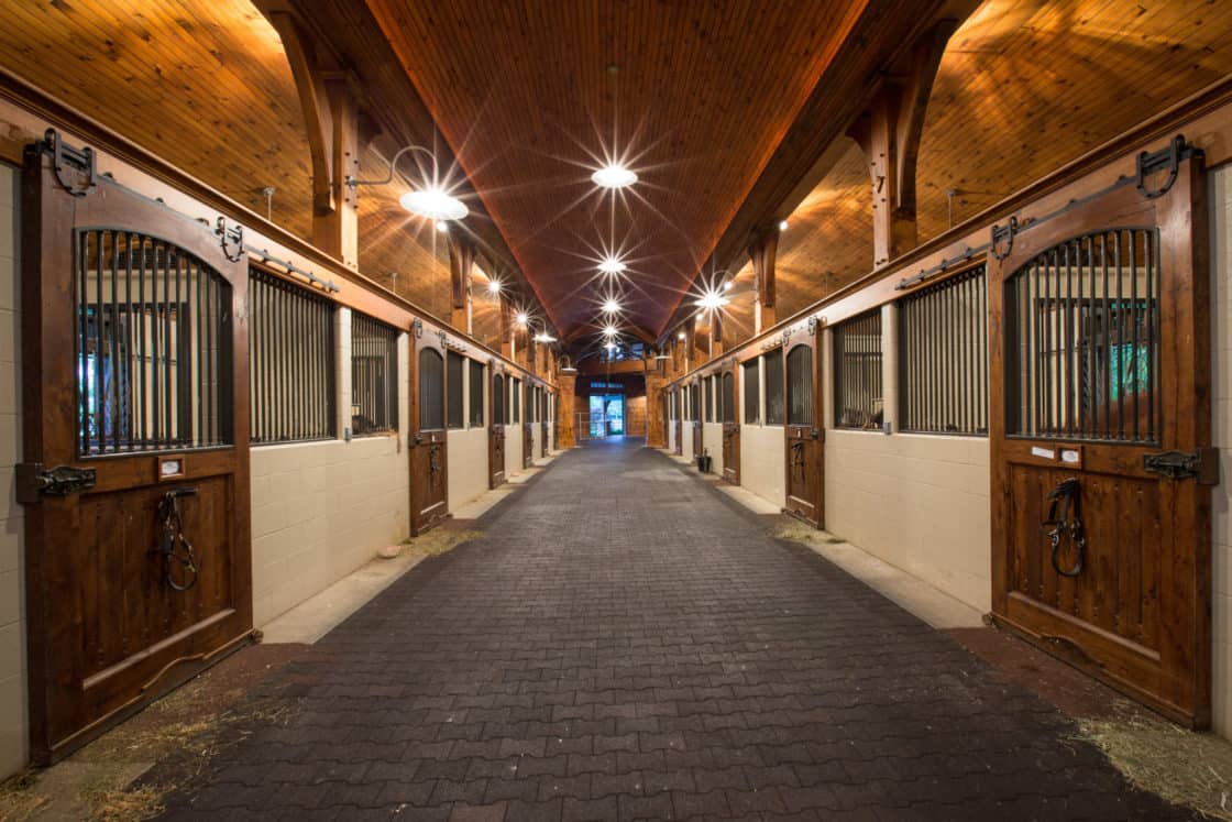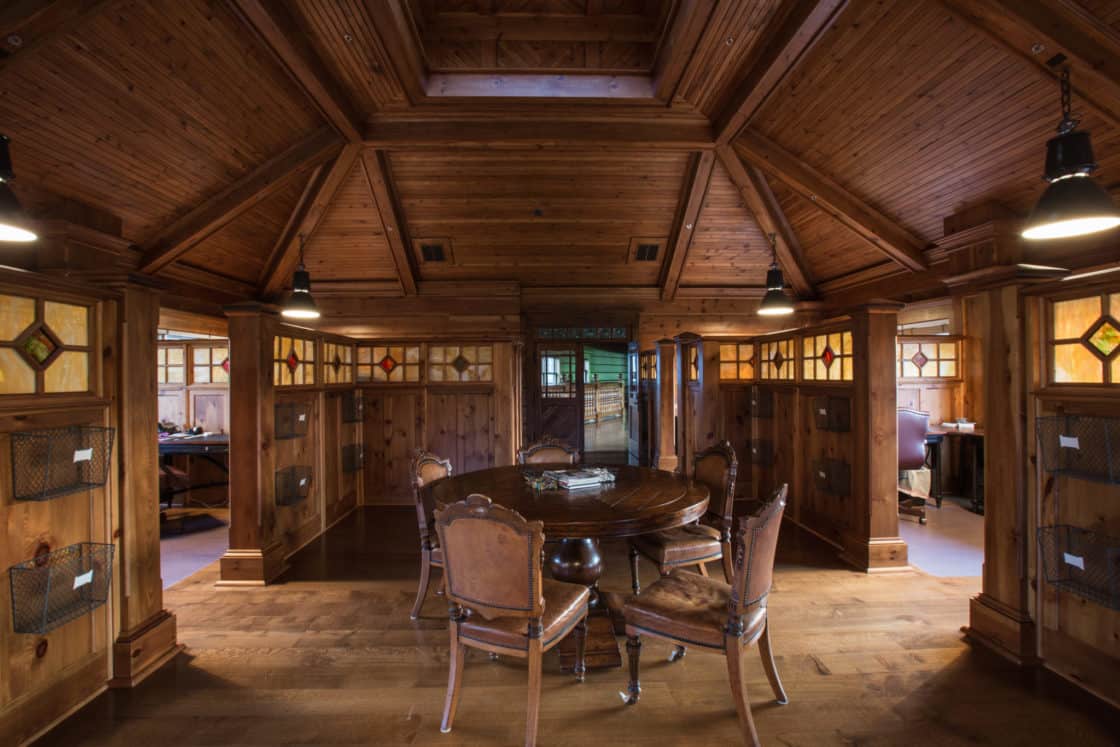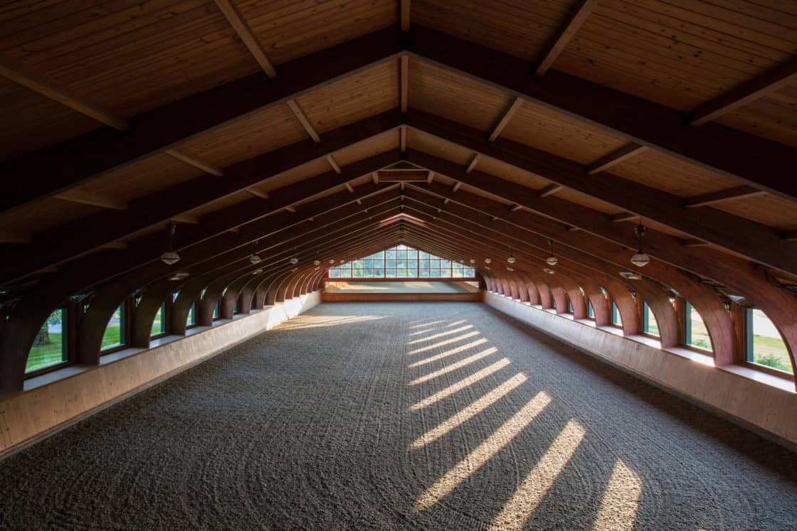 This showstopping equestrian project is 54,000 square feet of horse heaven. It includes stalls, a riding arena, and a clubhouse, as well as spacious porches to relax on and enjoy the outdoors. Douglas fir timber frames, cedar lap siding, and a shingle roof accented by copper roofs on the cupolas, plus copper gutters and thoughtful trim details throughout, make this facility particularly unique.