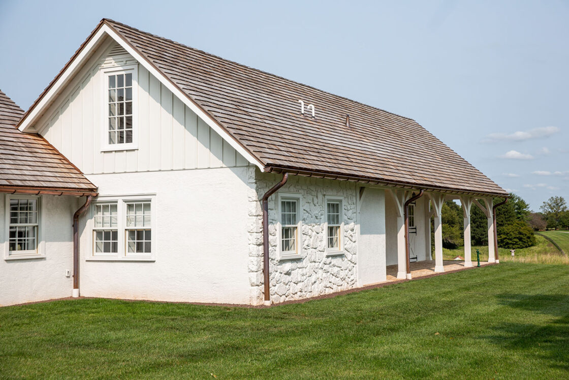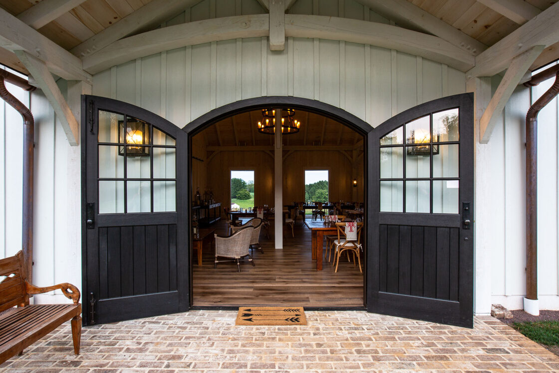 This client had two buildings on their property that had seen better days — and a wedding coming up. B&D Builders created a timber frame party barn and bridal party quarters fit for the occasion! The party barn features Douglas fir timber frames, a new standing seam roof, maintenance-free HardiePlank siding, and sapele mahogany doors. Vintage Millwork and Restoration built two cupolas to top it all off.